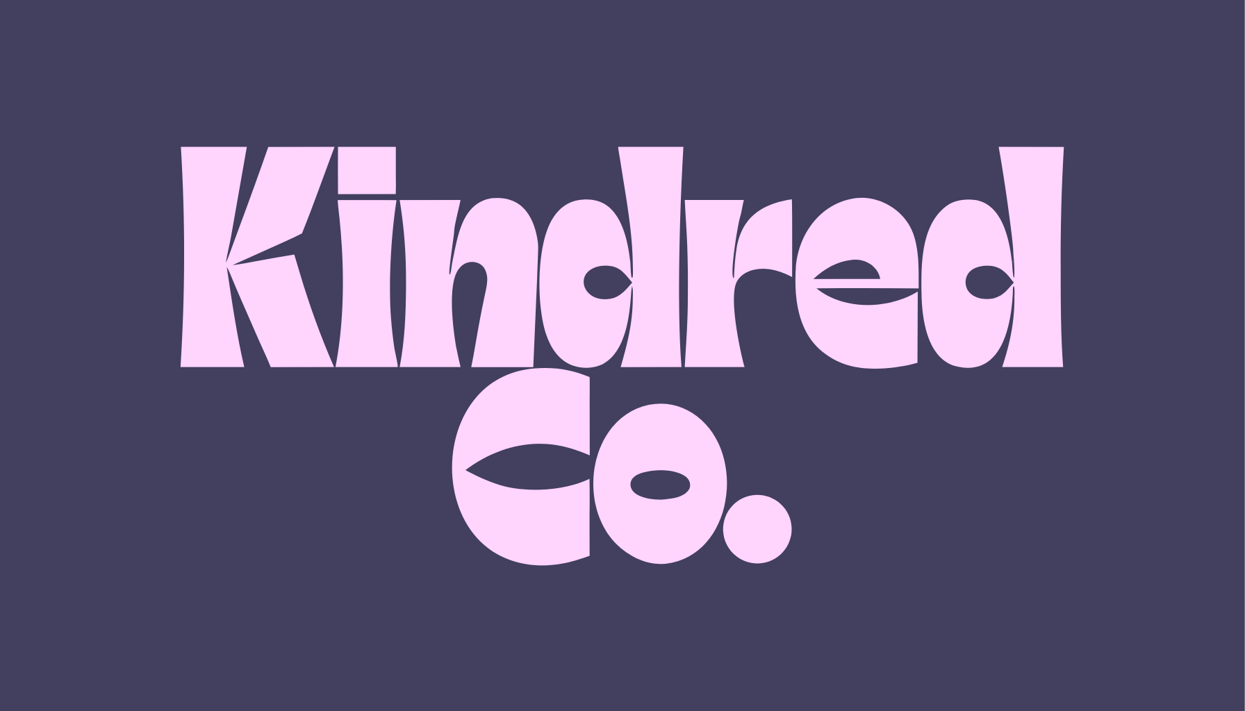 Logo "KINDRA" Serif or sans-serif, typographic composition in bold, ultra-chunk. Brand about care, community, kindness, human connection.