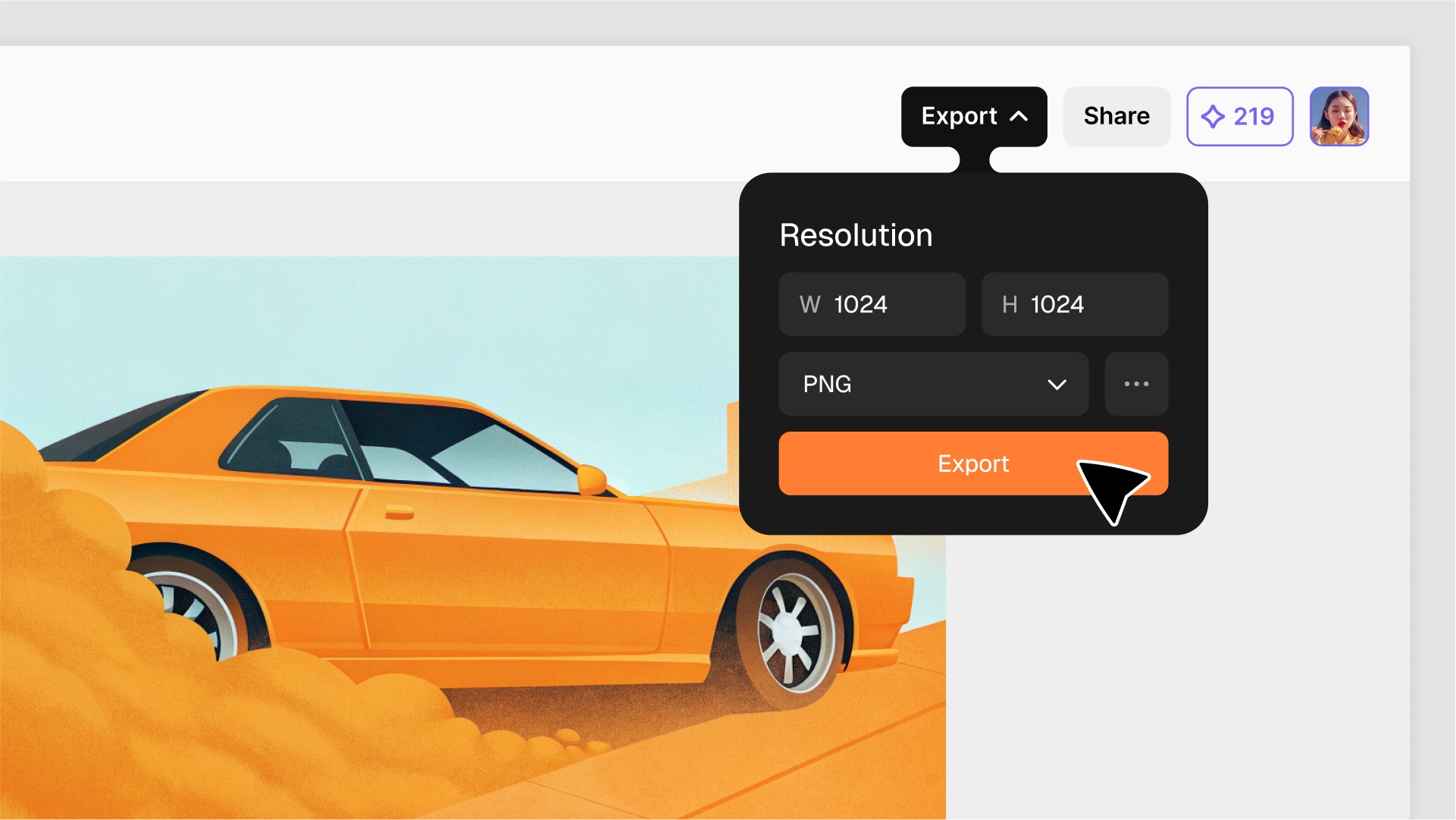 Enlarge visuals to increase resolution, add crisp detail, and remove artifacts. Make images print-ready with one click.