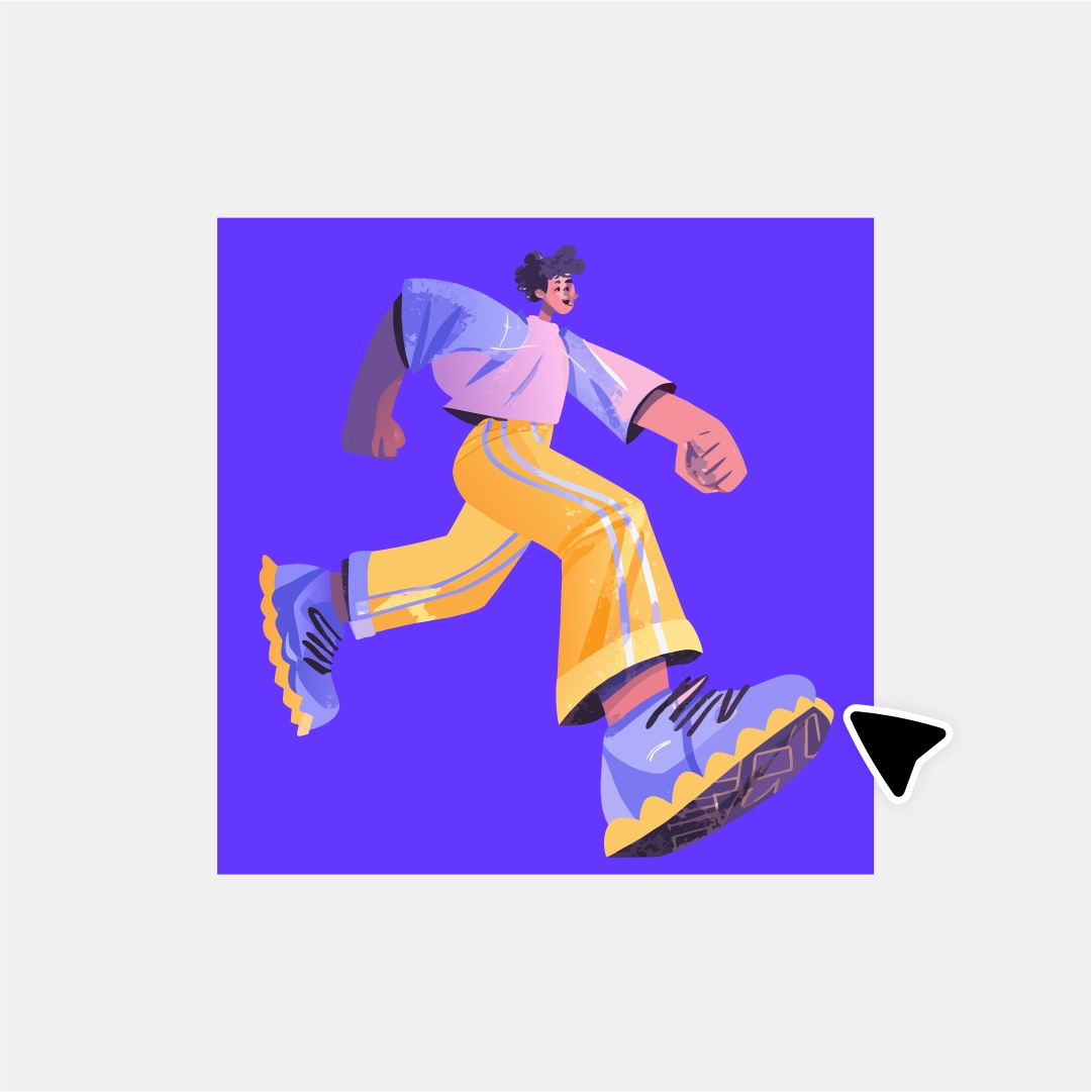 Playful vector graphic of a person walking a cheerful golden retriever.