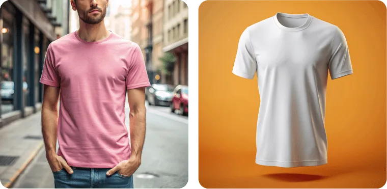 Recraft's AI t-shirt mockups are always proportional and pixel-perfect — with shadows and curves in all the right places. Enhance your images with AI upscaling for even more detail on your mockups.