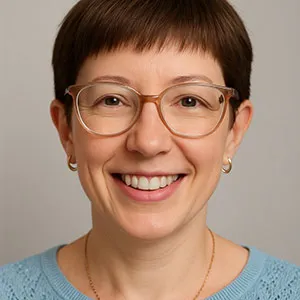 En face portrait of a beautiful 22-year-old smiling blonde with a natural-looking face, without makeup, sitting on the beach, the sun is shining in the background, we can see her head and face from the front, she is looking straight at us, she is facing us. Orange background