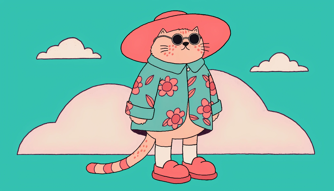 Use a bright but balanced color palette: saturated lavender, coral pink, mint green, sky blue, warm yellow, and soft lime.