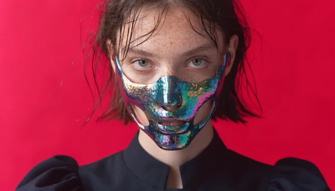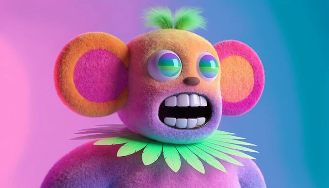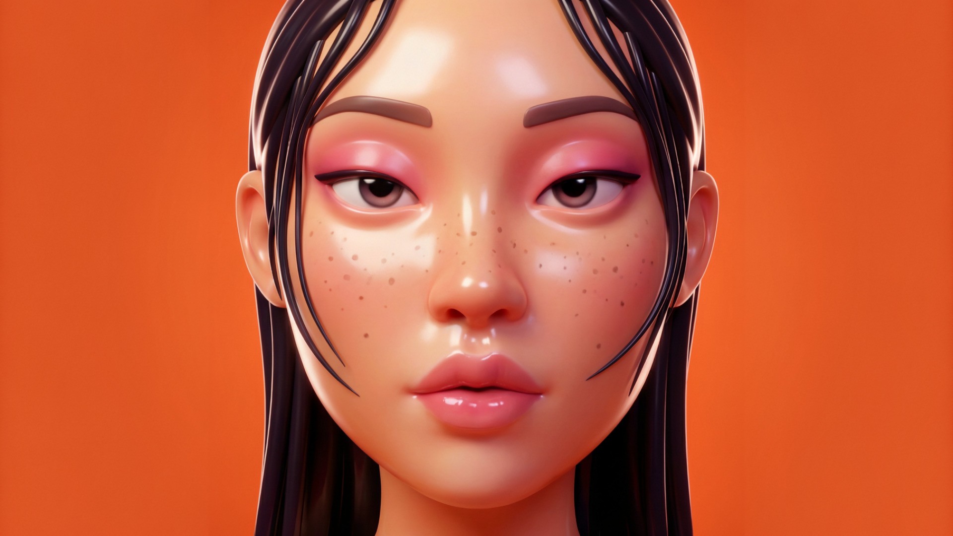 Transform the portrait into a stylized 3D character with smooth, glossy skin and soft, simplified facial features