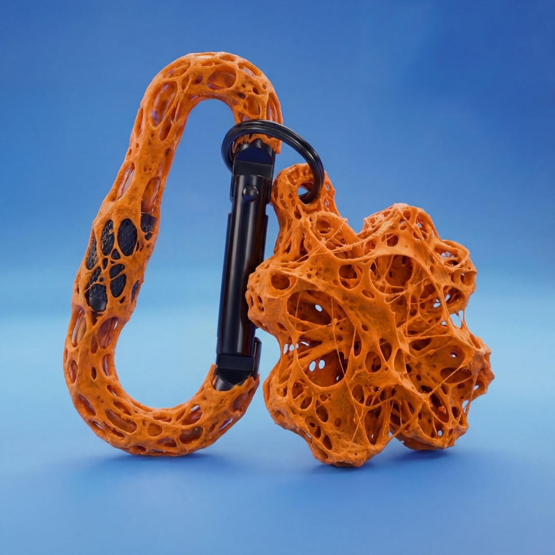 Make it a porous, organic orange structure with a web-like texture of aerated foam or coral